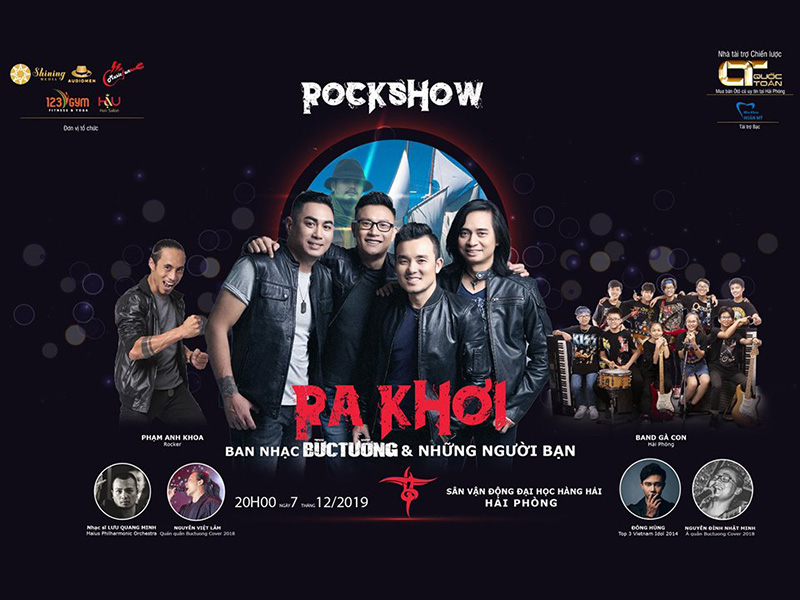 Một tin không thể vui hơn cho các Rock Fan - Siêu ban nhạc Bức Tường nổi tiếng với những bản nhạc Rock đầy mạnh mẽ và đậm chất tự sự cùng ca sỹ Anh Khoa sẽ có mặt tại sự kiện Rock Show rất đáng chú ý mang tên "Ra Khơi" (nghe tên là thấy đậm chất Hải Phòng rồi ạ ^^) sẽ diễn ra vào ngày 7-12-2019 tại Sân vận động trường Đại Học Hàng Hải, Lạch Tray, Ngô Quyền, Hải Phòng.
