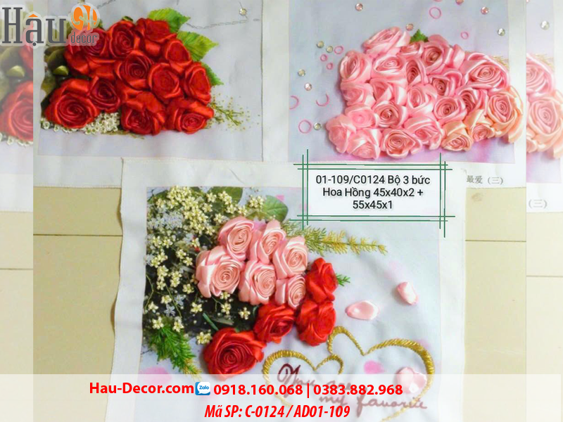 Kit tranh thêu ruy băng Bộ 3 bức Hoa Hồng C-0124 / AD01-109