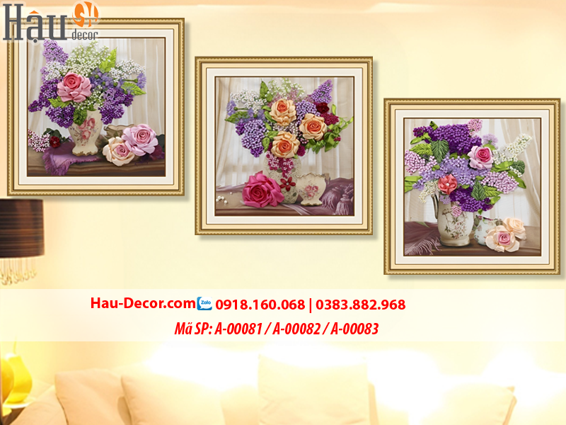 Kit tranh thêu ruy băng Lọ Hoa Nghệ Thuật A-00082 có thể kết hợp bộ 2 hoặc bộ 3 bức cùng với kit tranh thêu ruy băng mã A-00081 & A-00083 treo Phòng Khách/ Bếp/ Ngủ/ Cầu thang/ Hành lang/ Chiếu nghỉ/ Văn phòng làm việc,....