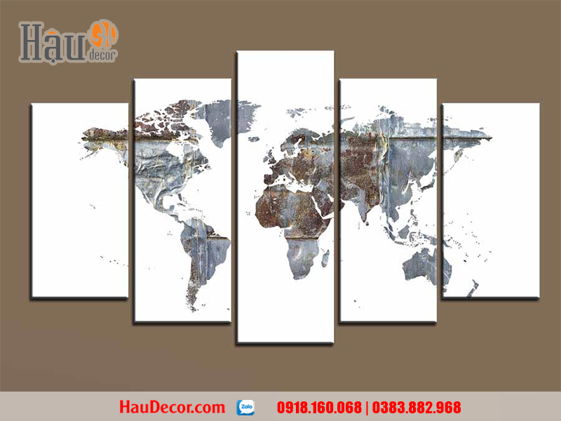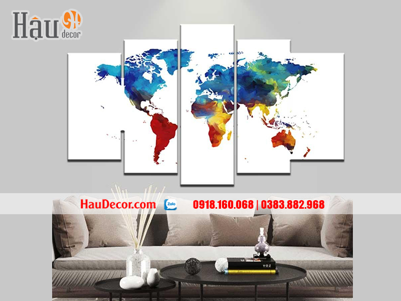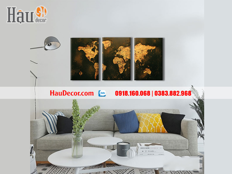 Một bức tranh treo tường hiện đại in hình bản đồ thế giới không chỉ cho thấy chủ nhân là người đam mê công việc, có bầu nhiệt huyết khám phá thế giới xung quanh mà còn toát lên vẻ tri thức, phong cách chuyên nghiệp