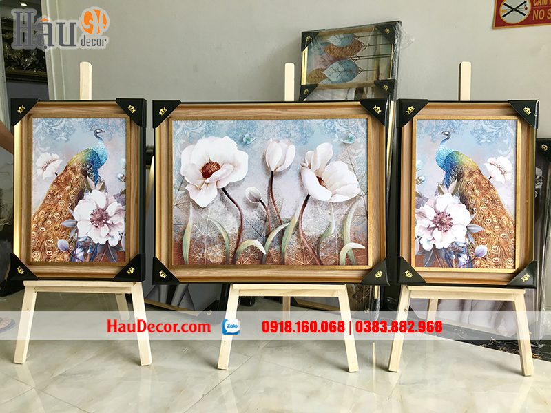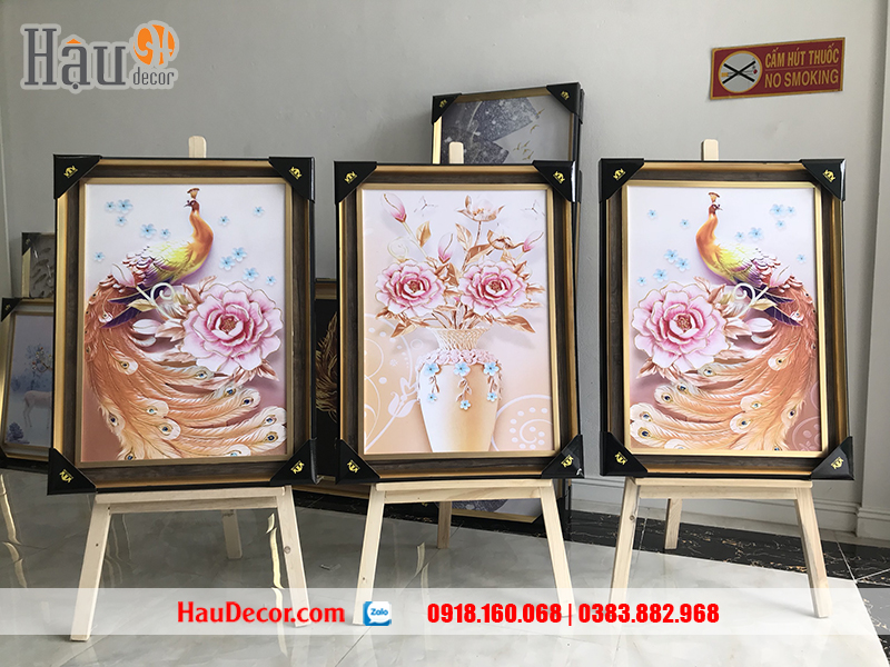 Tranh được ép khung composite 4 màu (trắng, nâu đen, vàng, gỗ), tạo độ chắc chắn và thẩm mỹ cao cho bức tranh.