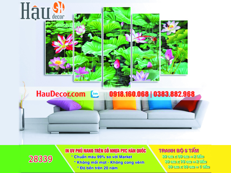 Tranh treo tường hiện đại 3D bộ 5 bức Hoa Sen 28339 được sản xuất trên 2 chất liệu chính:
