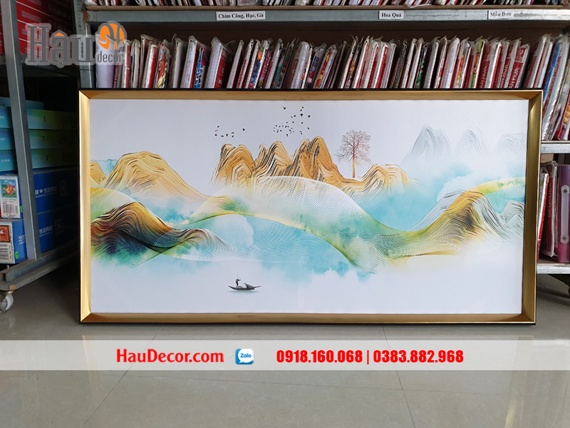 Tranh cao cấp Lụa bóng nhập khẩu chống ẩm mốc, in tràn lề, trọng lượng nhẹ, treo tranh không cần khoan tường, có khung hoặc không khung ngoài.